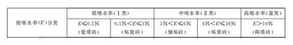 在瓷磚行業,吸水率一般用百分比表示,按照國家標準,在《陶瓷磚(GB/T 4100-2006)》附錄G中,將干壓陶瓷磚吸水率E≤0.5%稱為為瓷質磚,在0.5%以下并未再做細分。