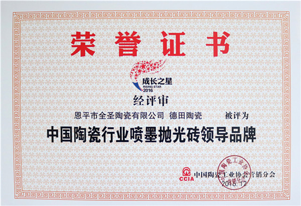 德田陶瓷始建于1998年,是全圣集團旗下的品牌之一,在廣東擁有兩個大型現代化環保型生產基地,分別位于廣東恩平市、廣東肇慶市。憑借企業雄厚的研發、生產及品牌運營實力,德田陶瓷已建立了豐富的產品體系:產品涵蓋了巖板、通體大理石瓷磚、瓷拋磚、大板瓷磚、中板瓷磚、自由連紋大理石瓷磚、花崗巖瓷磚、瓷片等品類;更涵蓋了 400X800mm、600X600mm、800X800mm、600X1200mm、750X1500mm、900X1800mm、800X2600mm、1200X2400mm等規格,產品花色豐富,品質穩定。